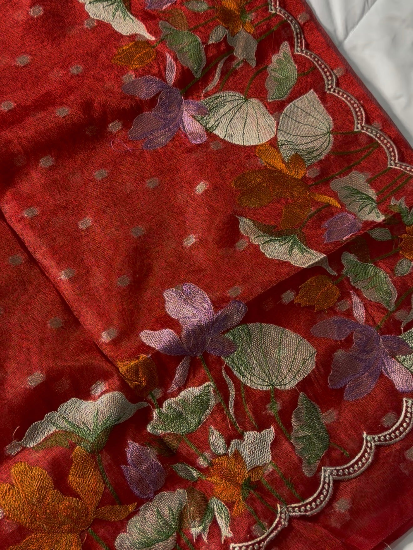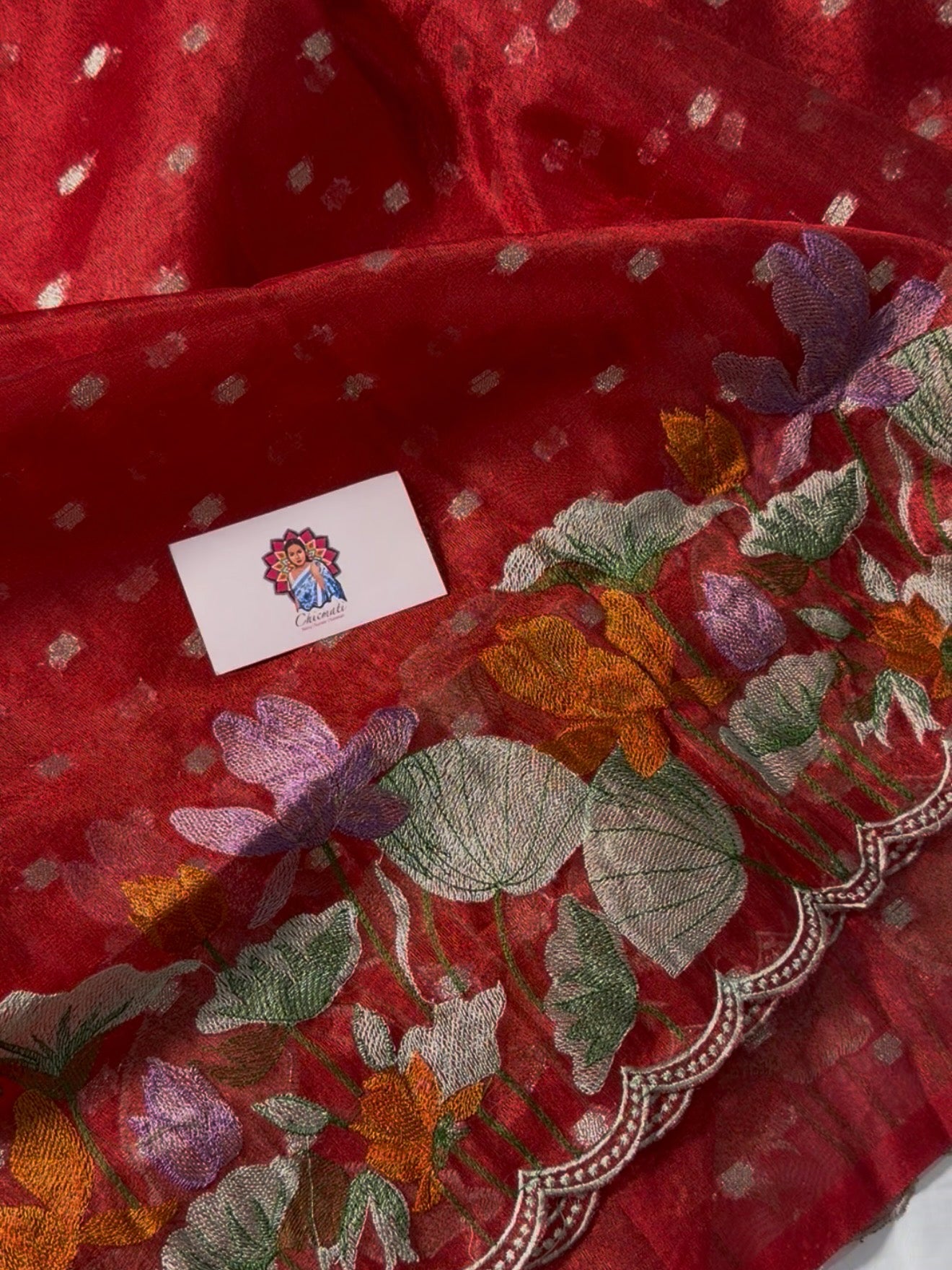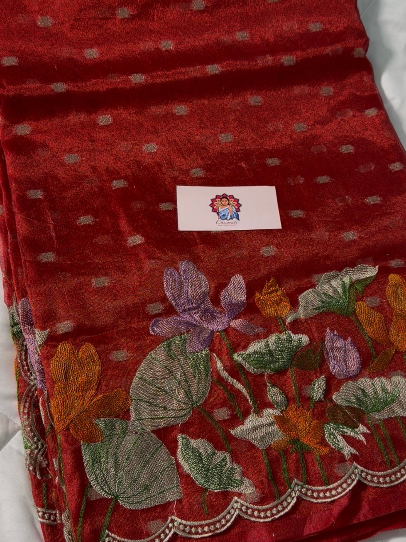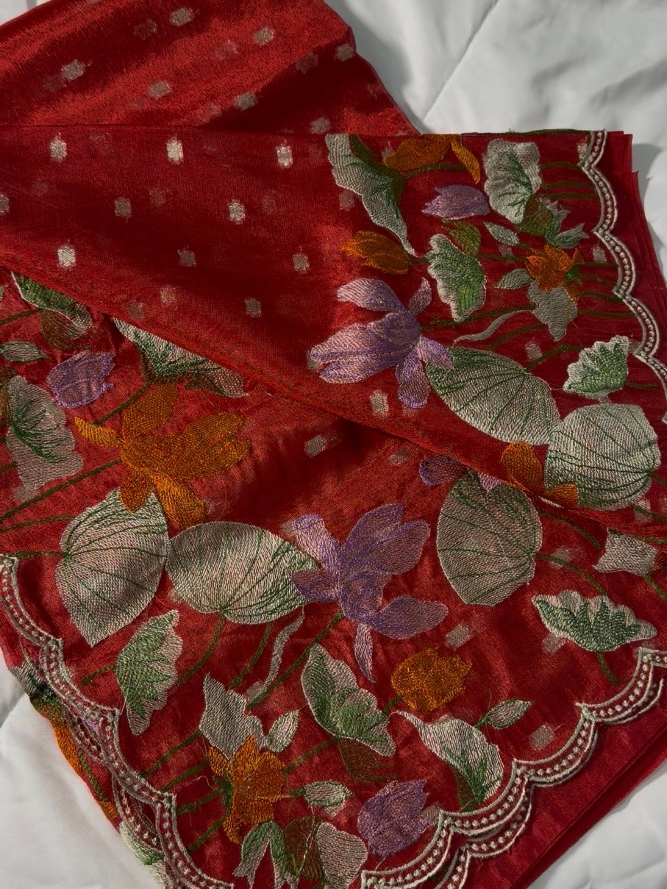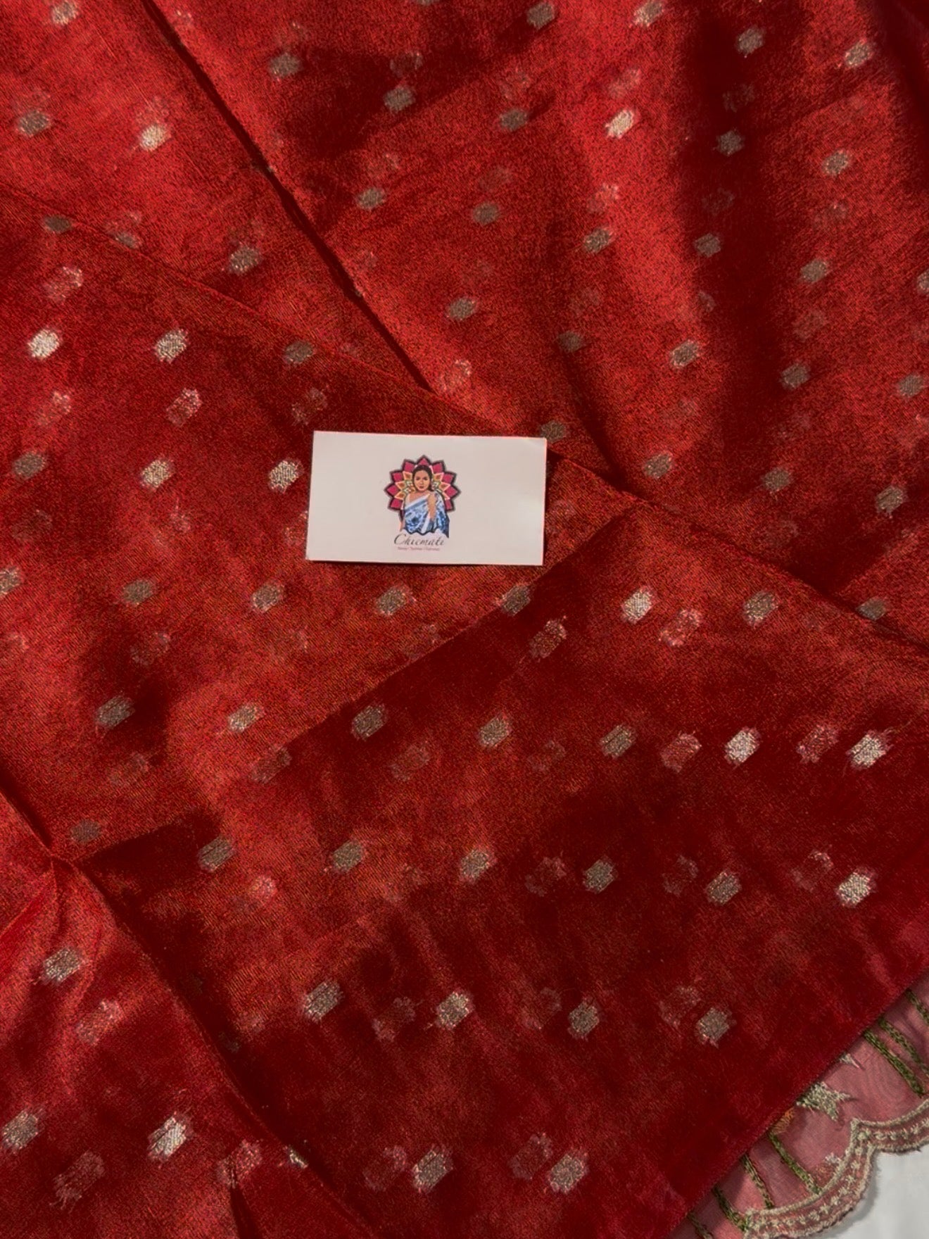 Wrap yourself in timeless elegance with this exquisite Tissue Saree, designed to shimmer with every step you take.