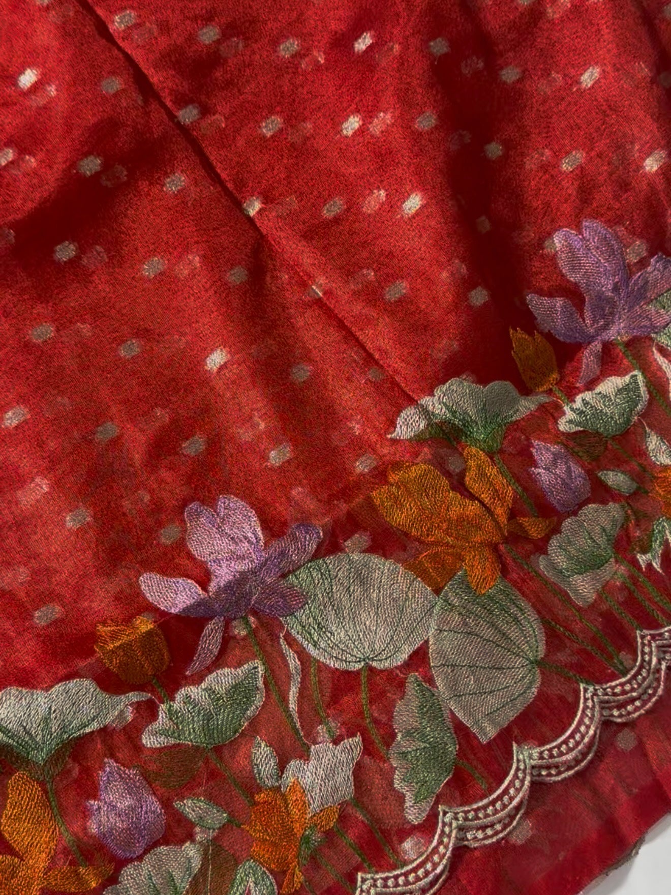 The highlight lies in its delicate scalloped border, adorned with beautiful embroidery and appliqué detailing, adding a touch of refined craftsmanship to your look.