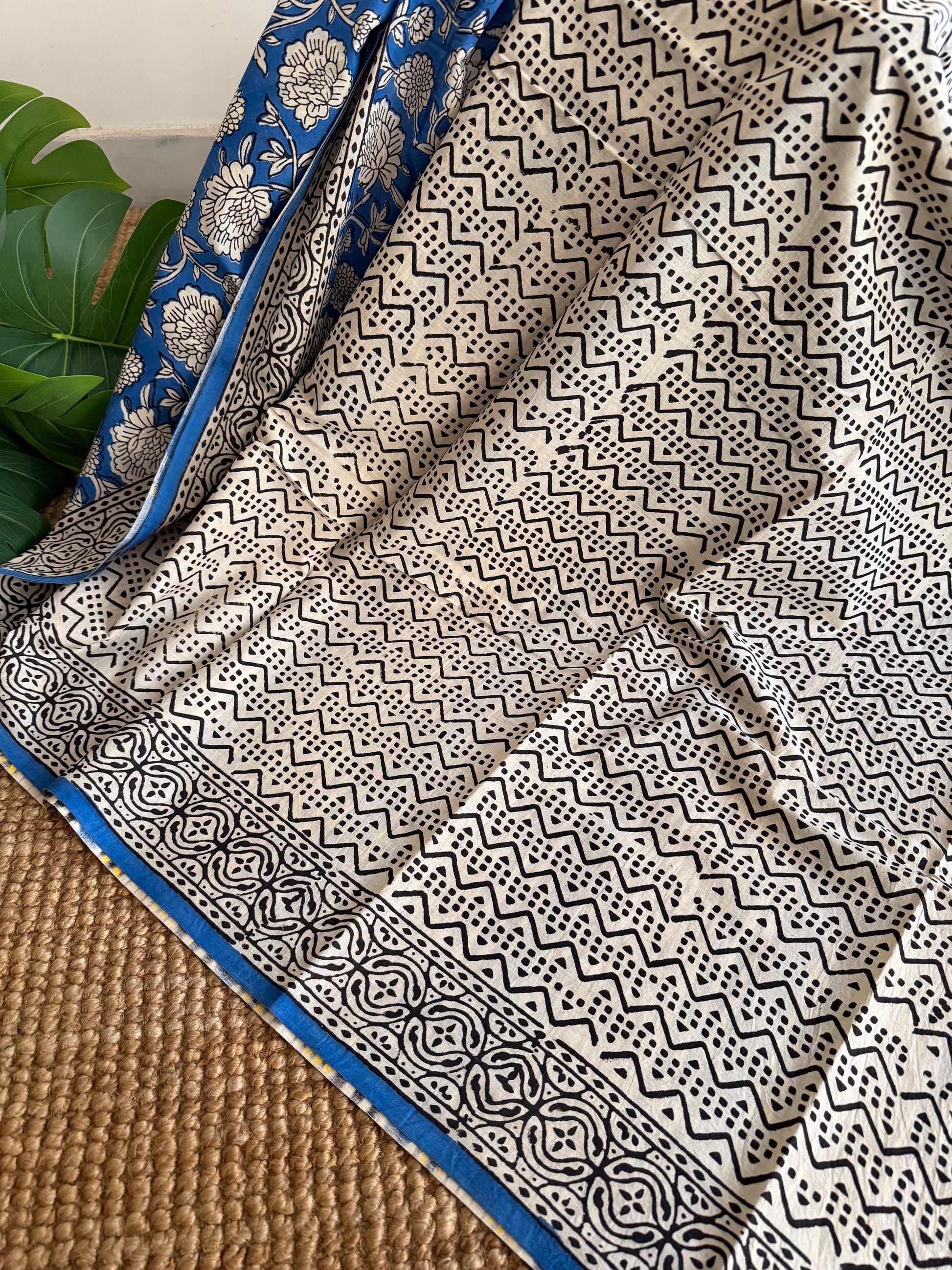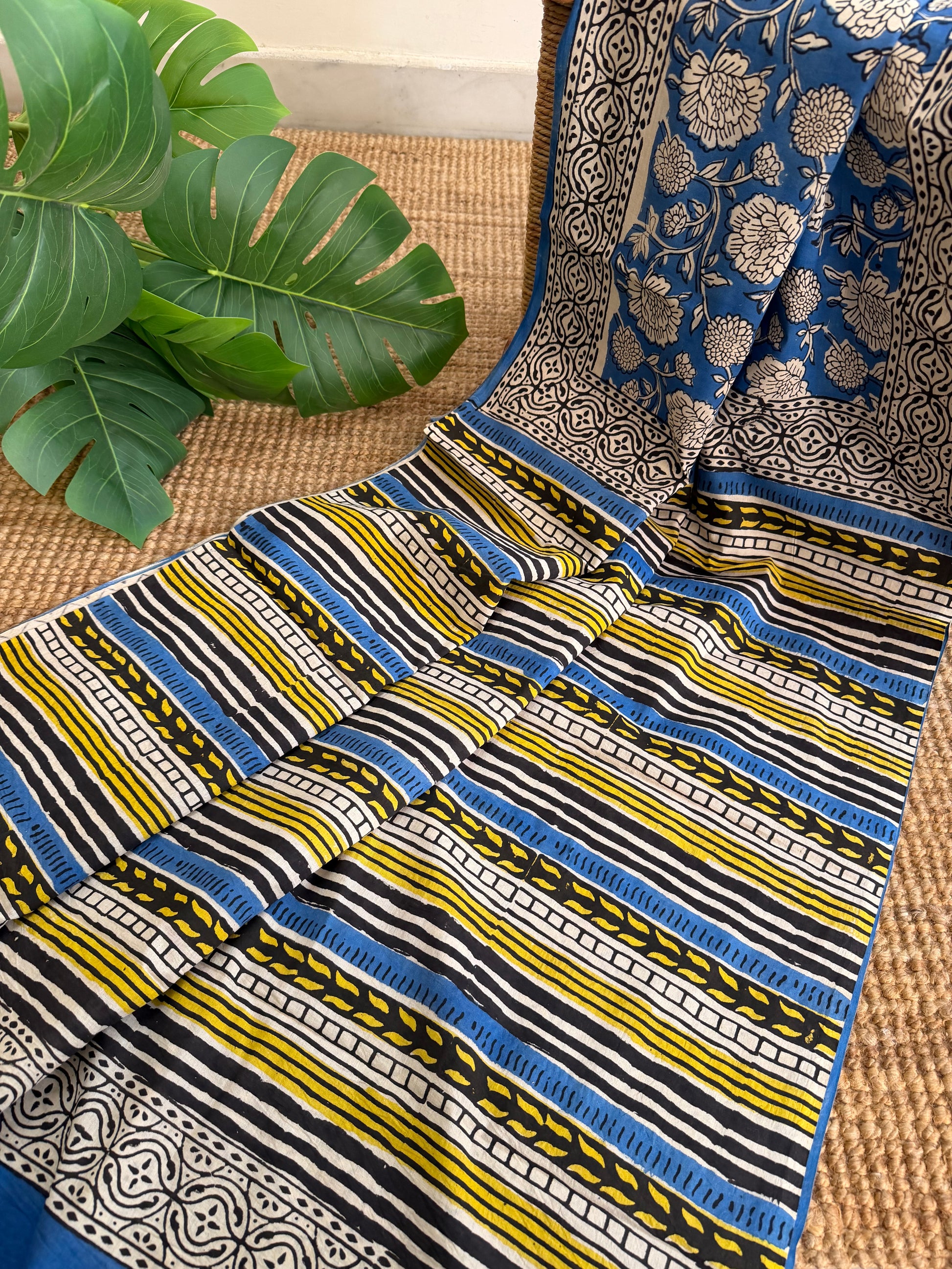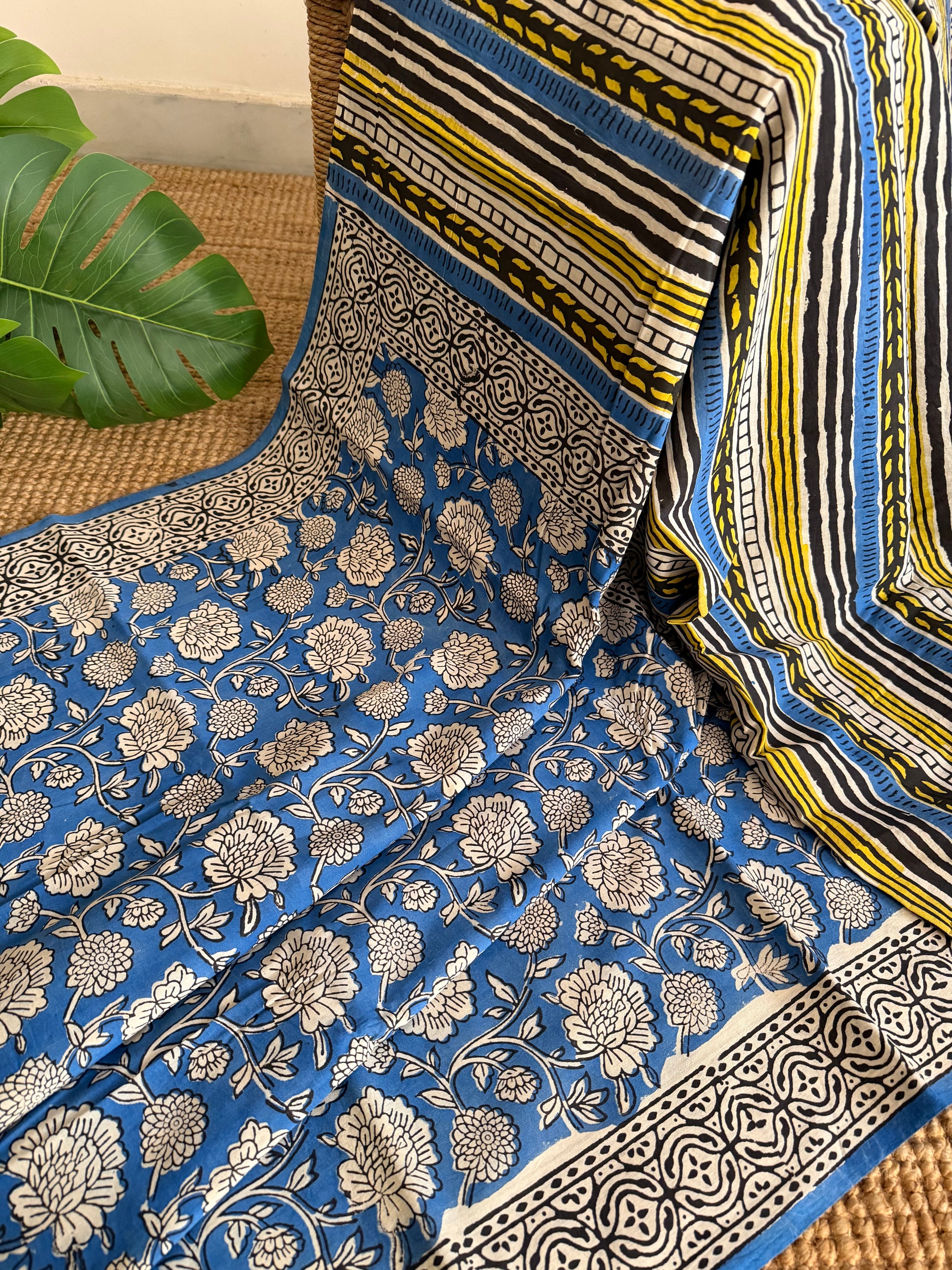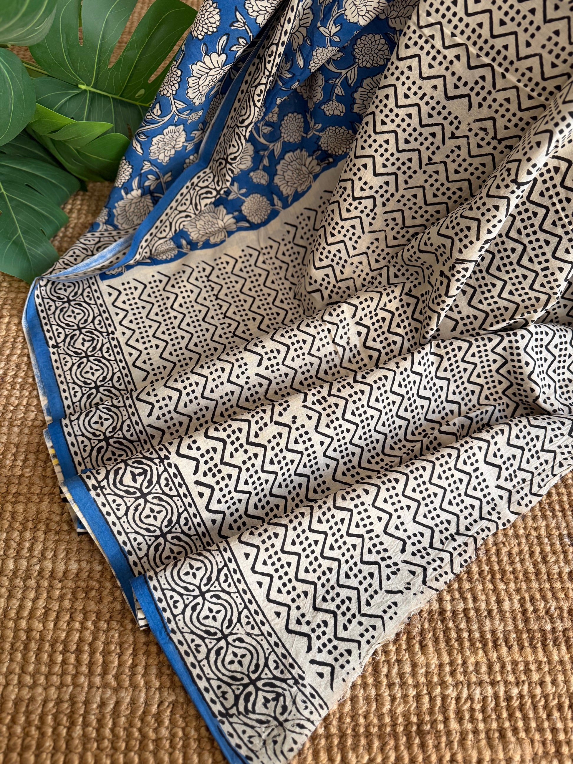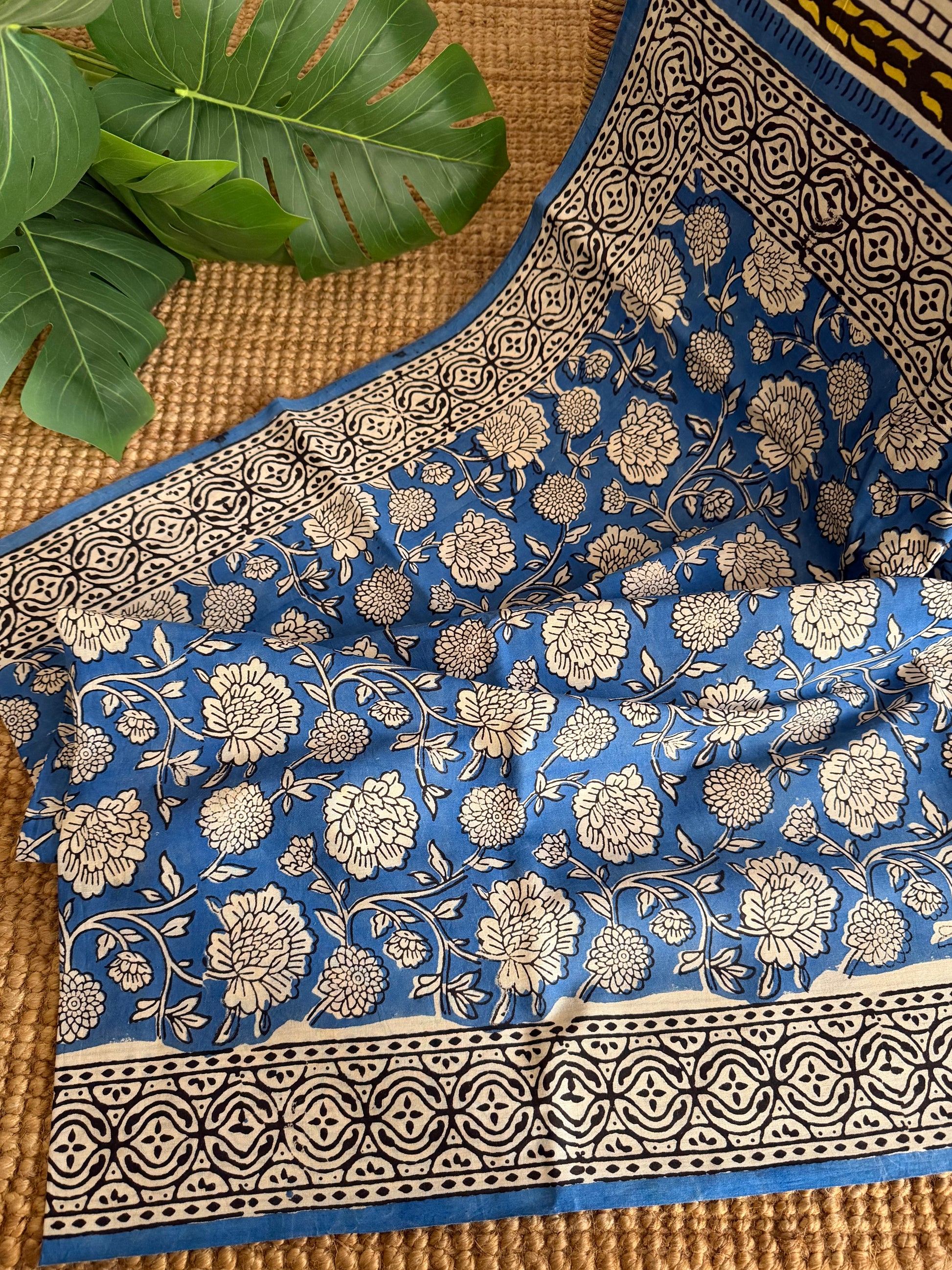 • Each saree is hand block printed, so slight variations in motifs, alignment, or spacing are natural.