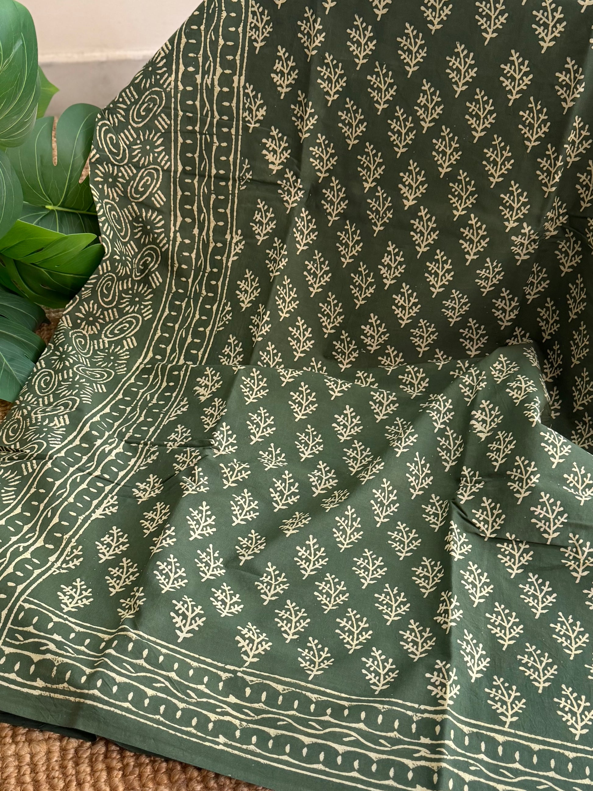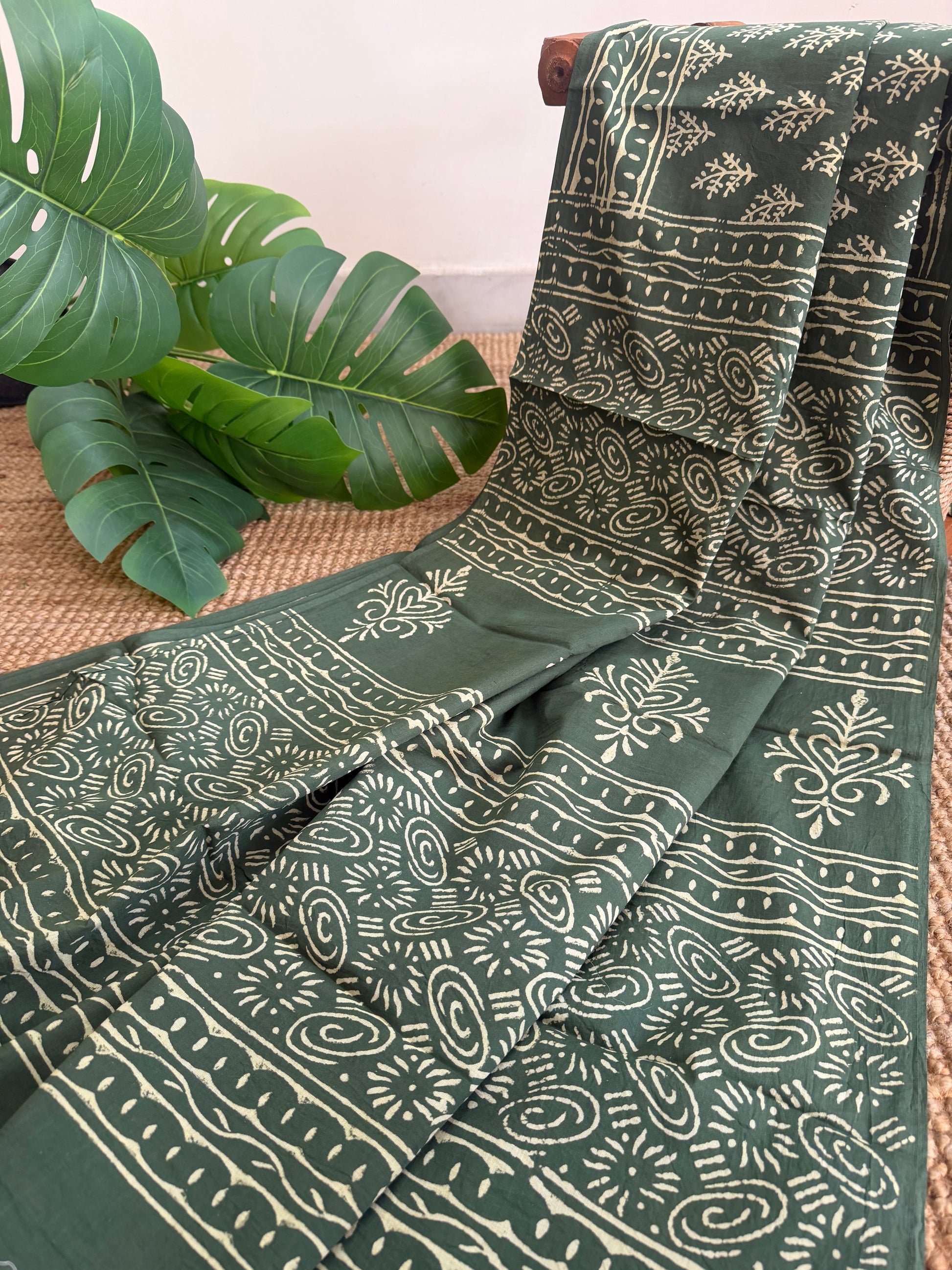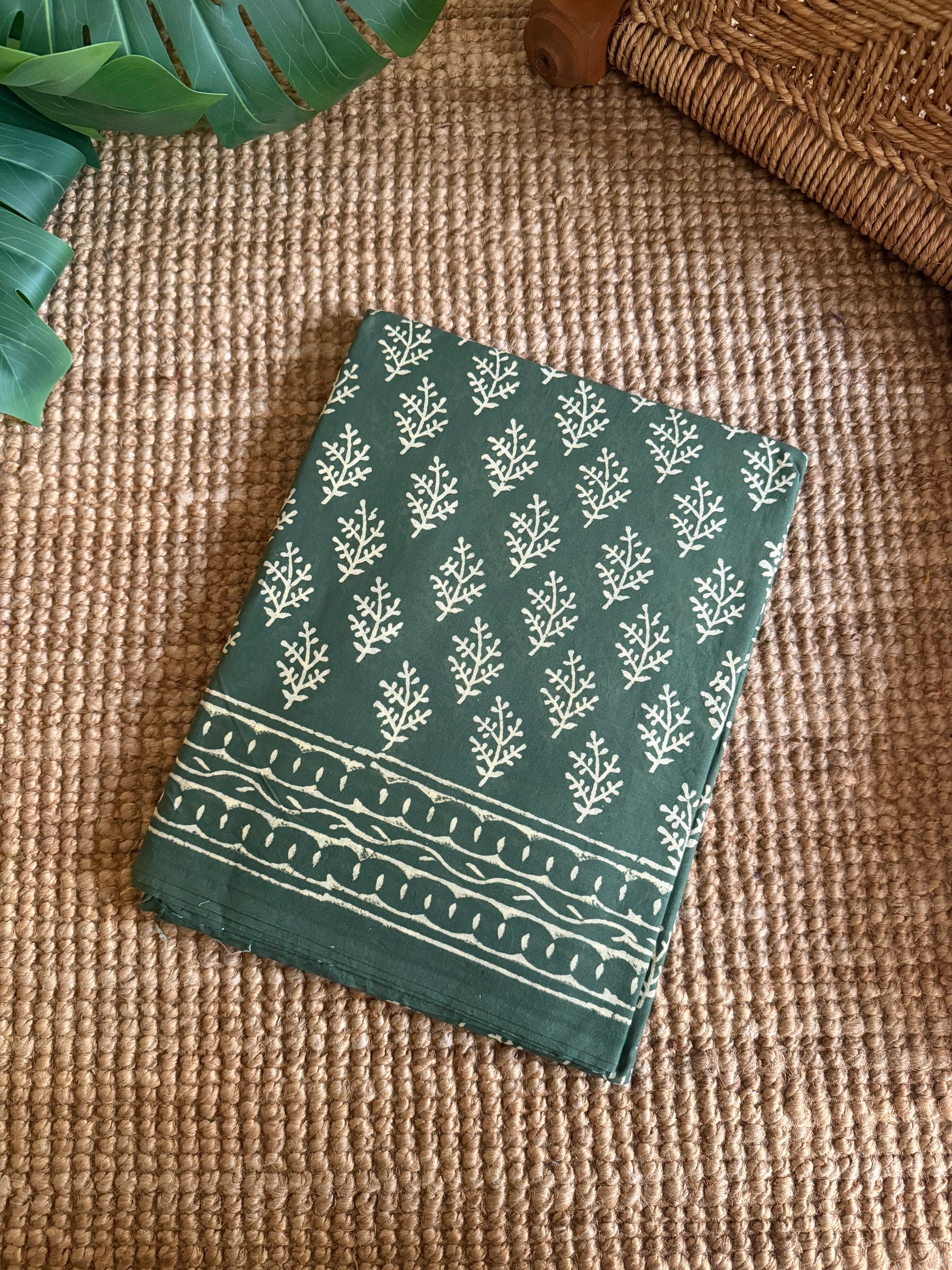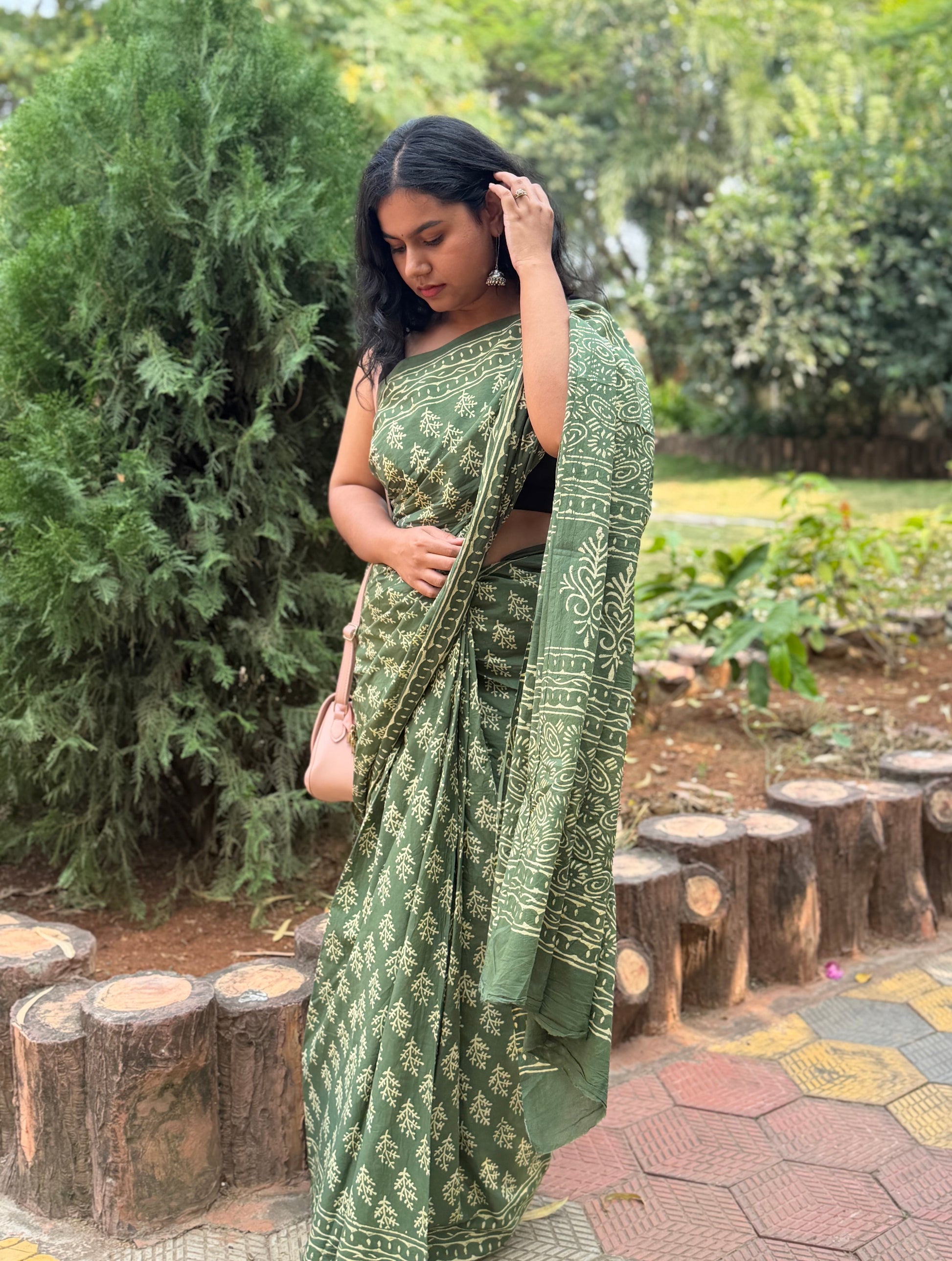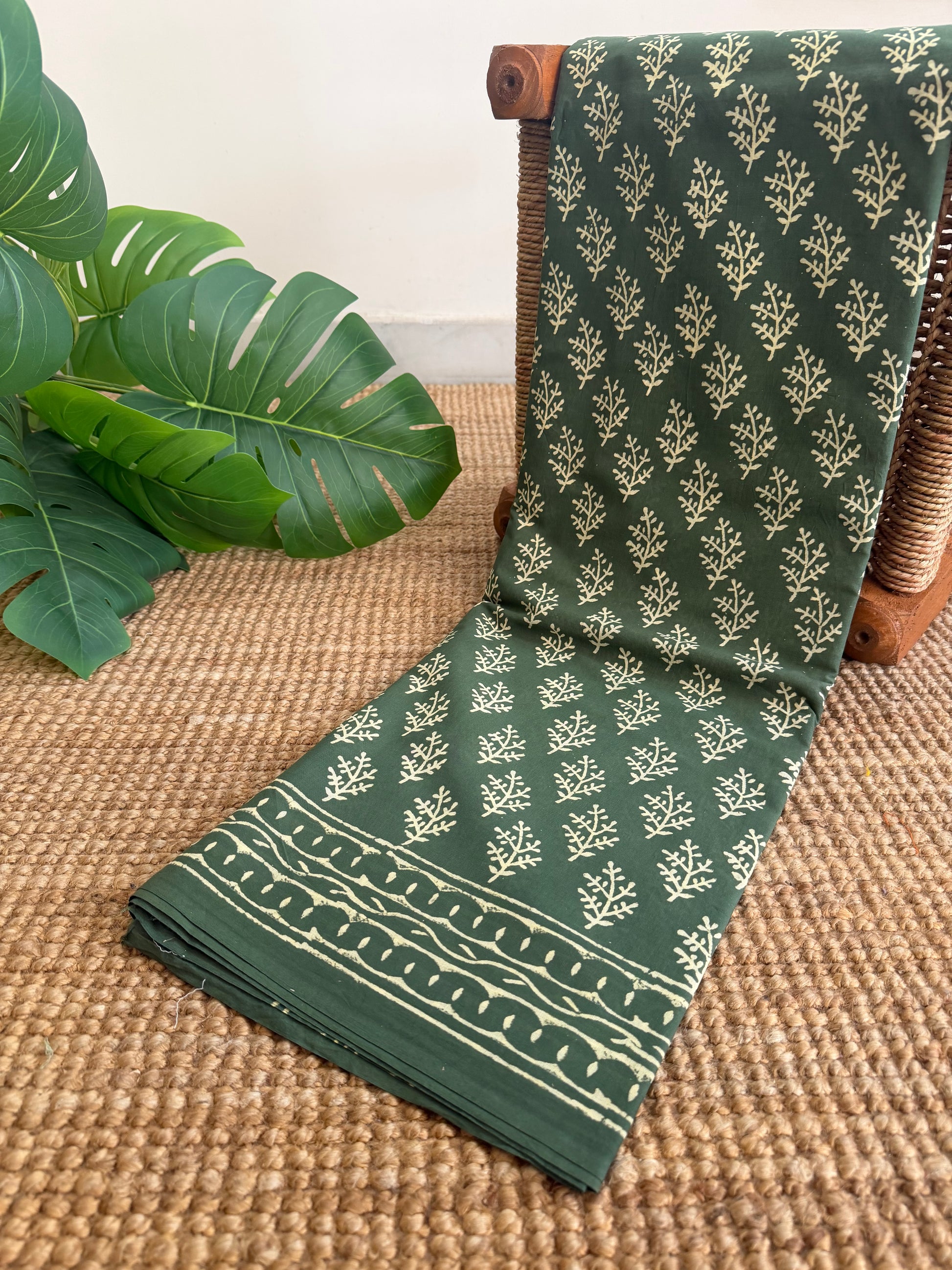 • Each saree is hand block printed, so slight variations in motifs, alignment, or spacing are natural.