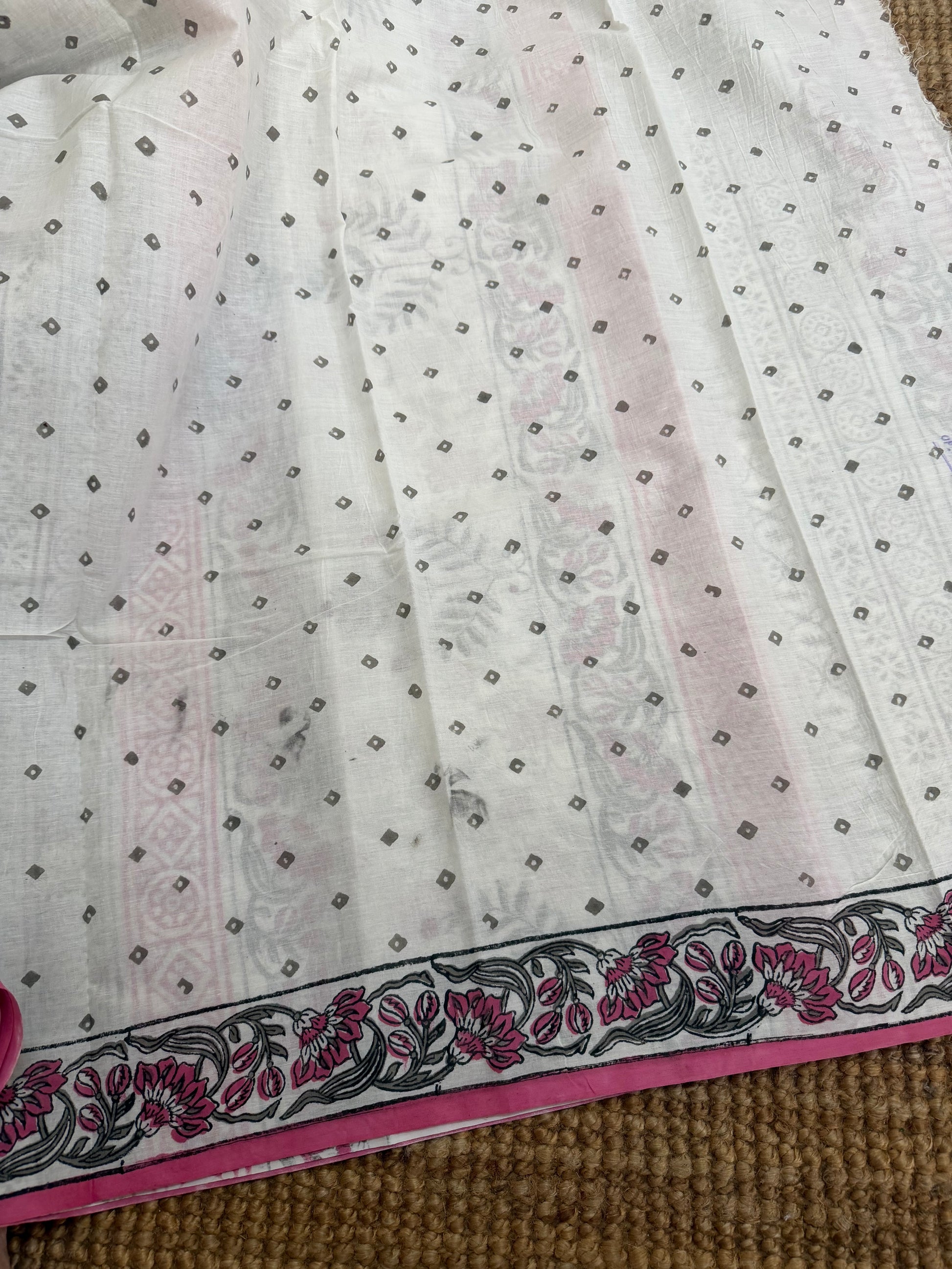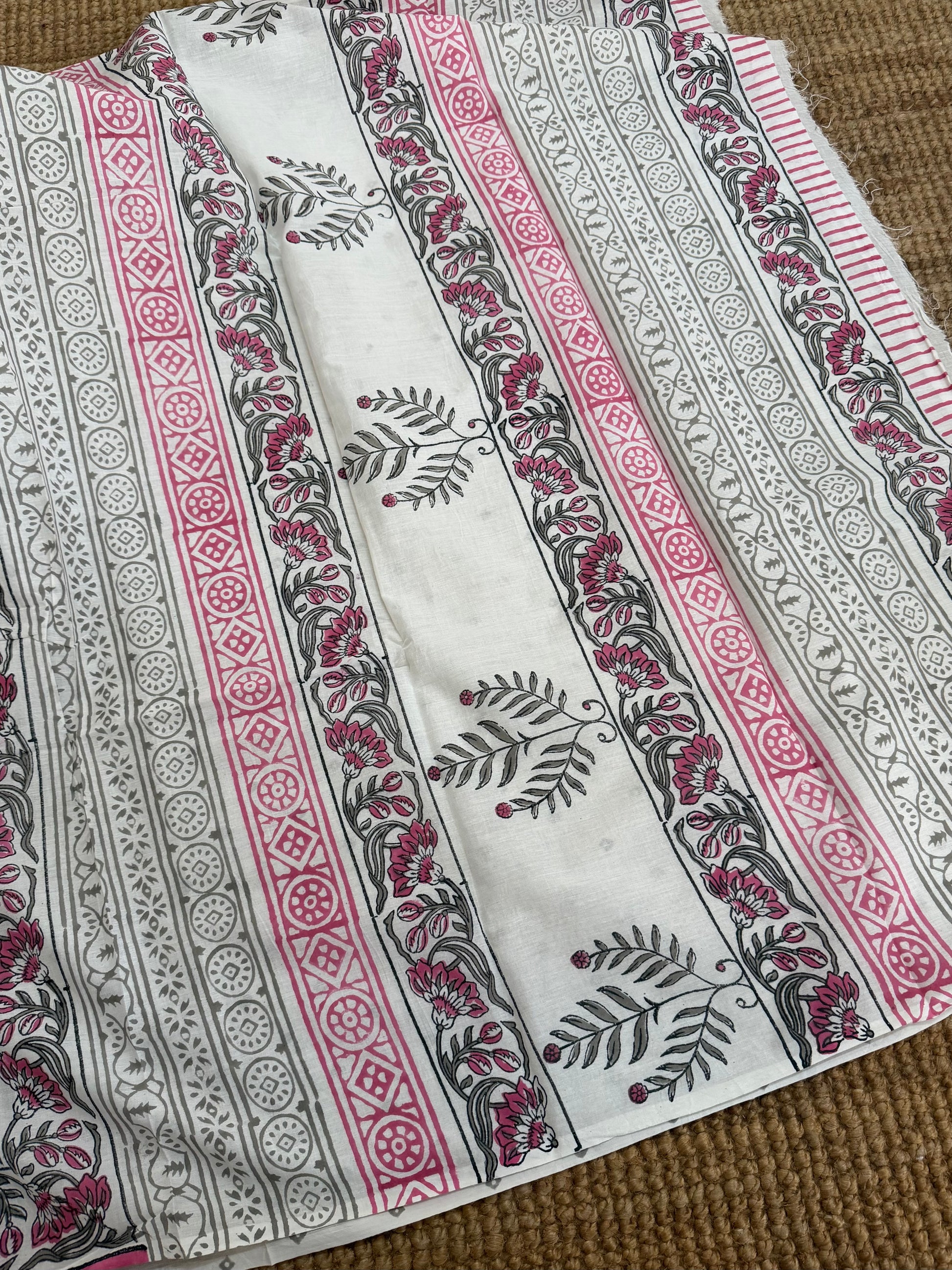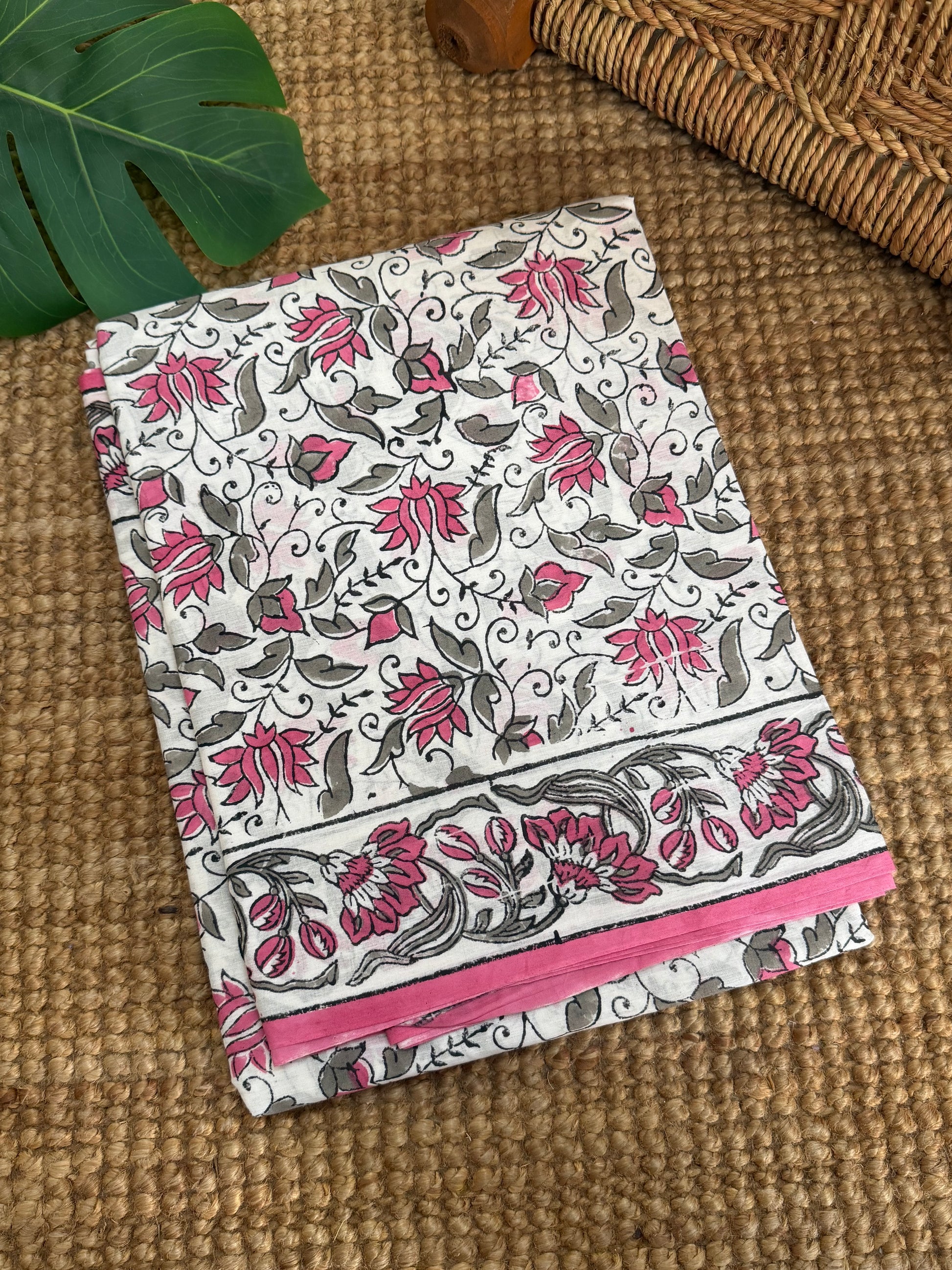 • Each saree is hand block printed, so slight variations in motifs, alignment, or spacing are natural.