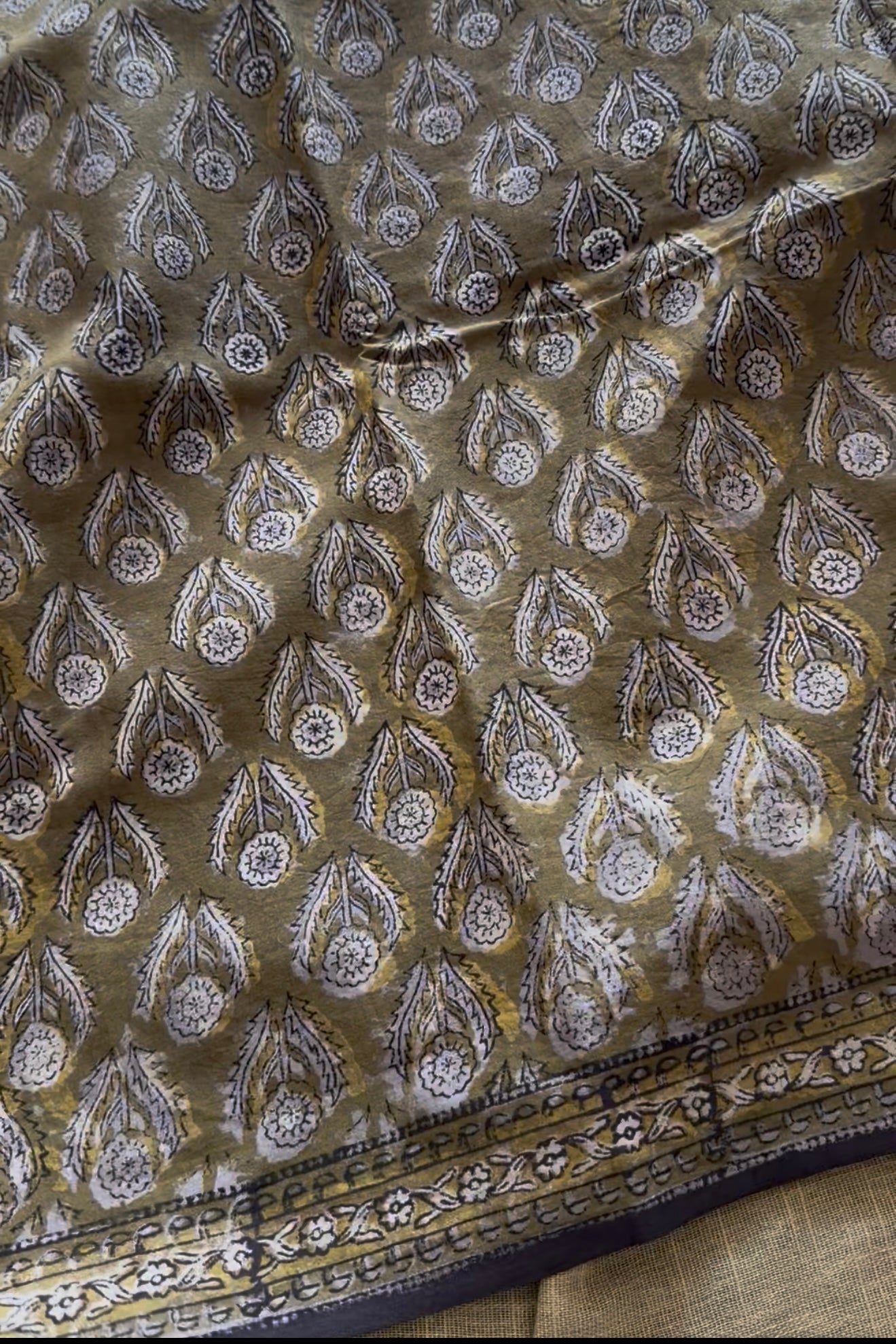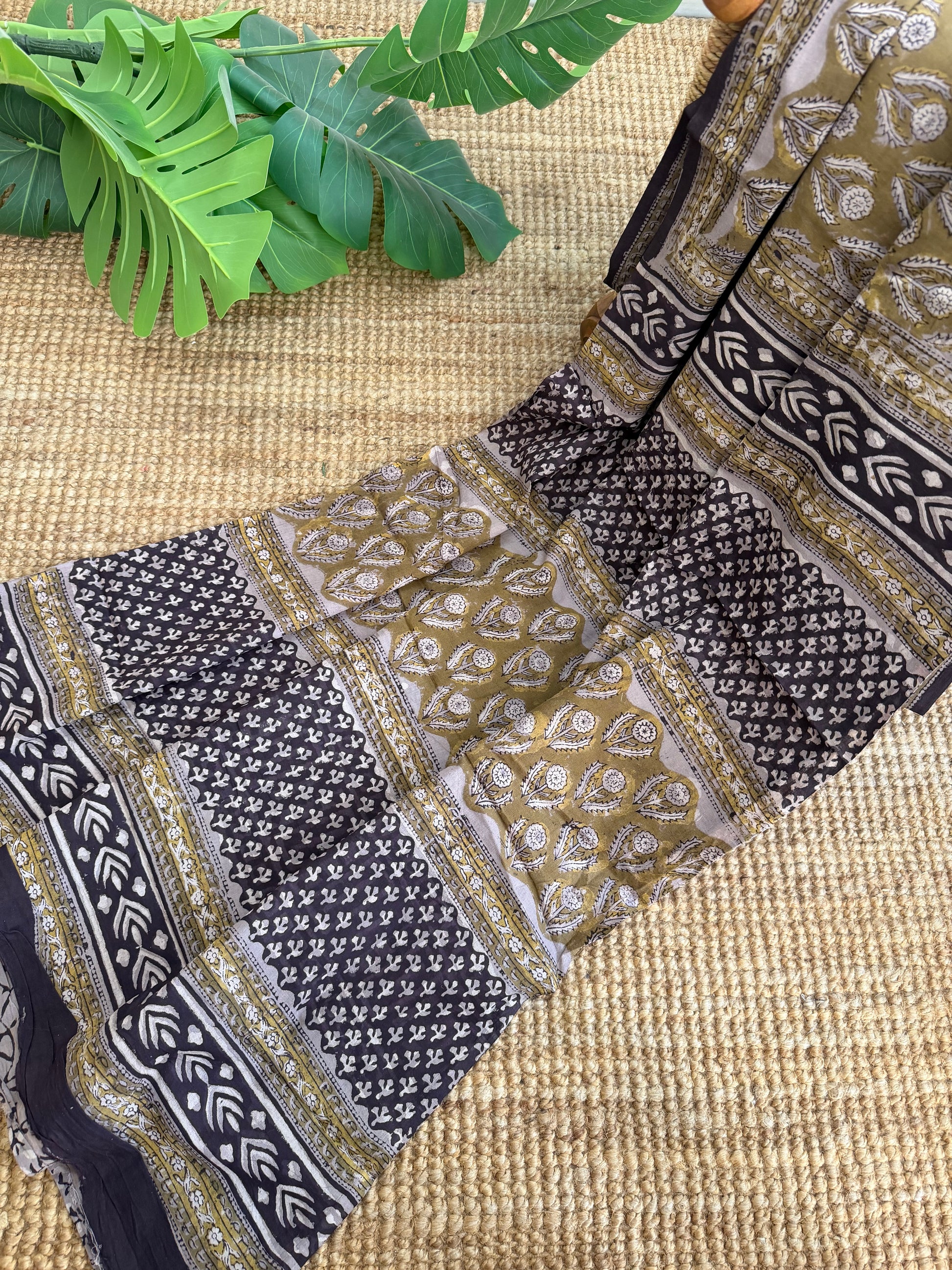 • Each saree is hand block printed, so slight variations in motifs, alignment, or spacing are natural.