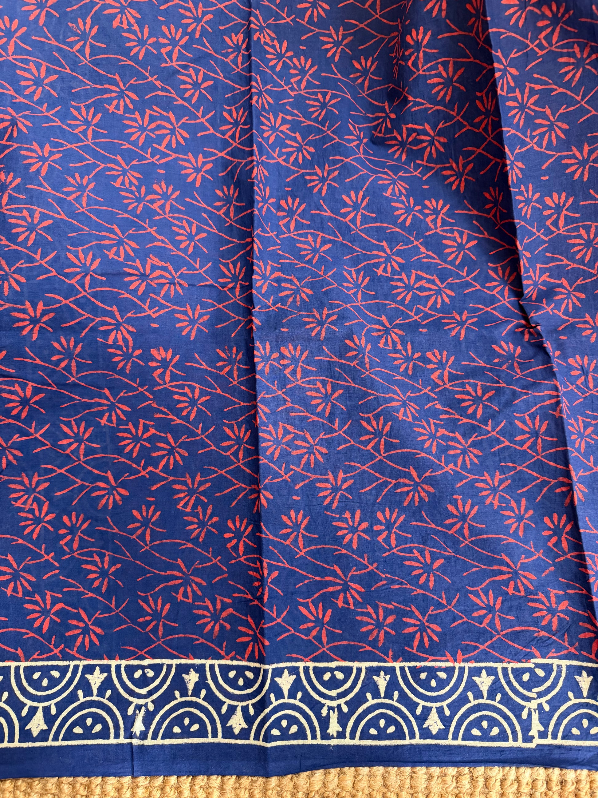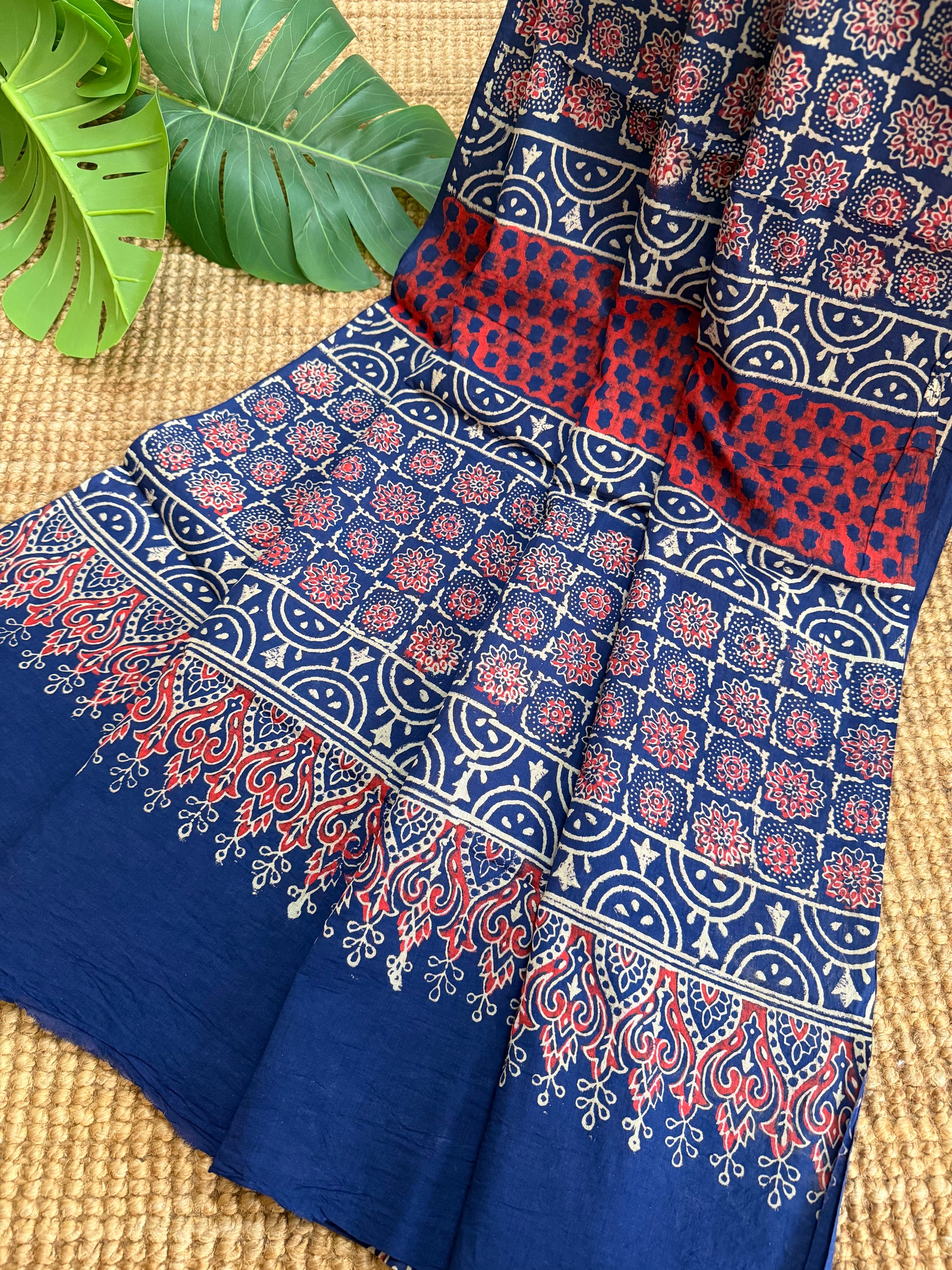 • Each saree is hand block printed, so slight variations in motifs, alignment, or spacing are natural.